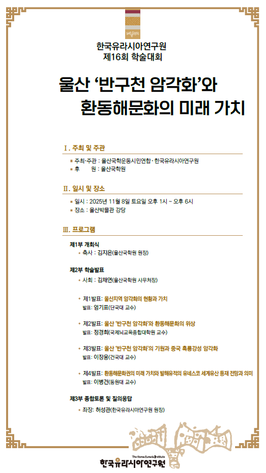제16회 학술대회 개최 - "울산 ‘반구천 암각화’와 환동해문화의 미래 가치"