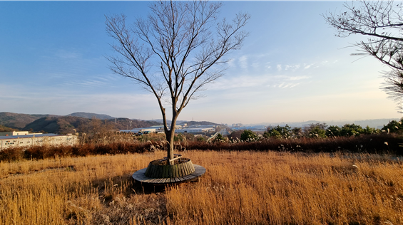 ▲ 연암동 환호유적 정중앙(솟대가 있던 자리?)에 심은 나무. 사진 한국유라시아연구원