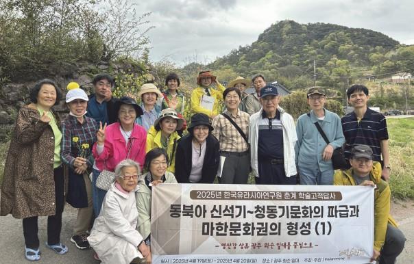 본원은 2025년 4월 19일부터 20일까지 “동북아신석기∼청동기문화의 파급과 마한문화권의 형성”이라는 주제로 영산강 상류 광주·화순 일대 학술답사를 진행하였다. 이번 답사는 동북아 신석기 석단총 전통의 연장선에서 전남지역 고인돌 문화를 바라보면서 마한문화권을 새롭게 인식 하는 계기가 되었다. 특히 운주사의 원형 다층탑이나 천탑 기하문(X, V, ◇, //), 칠층탑은 불교 도입 이전 선도문화와의 관련성을 연구하게 유도 하는 촉매제의 역할을 하였다. 또한 영산강 유역의 전방후원분은 서기전 4000년 천평문화의 만발발자유적에서 서기전 3500년 우하량유적으로, 다시 서기전 2세기경 고구리 적석총으로 이어지는 흐름 속에서 파악해야 그 원류와 일본 열도로의 확산을 이해할 수 있는 고분문화임을 확인하였다.